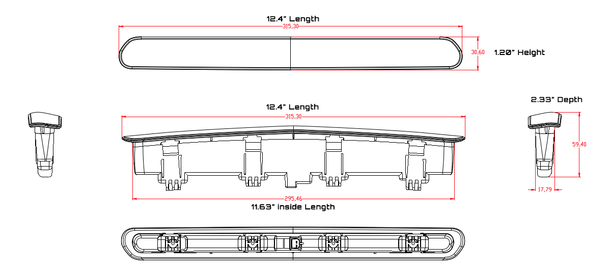 This light measures approximately 12.41″ in length with a dept of approximately 2.33 inches, and is mounted with the factory style bracket mount. It comes with the female factory plug socket for easy plug n play installation.