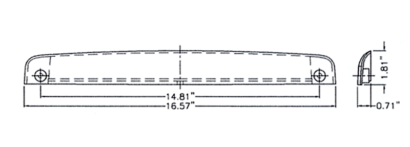 This Spoilerlight measures approximately 16.5″ in length and is mounted with two screws on either side of the light. There are two small caps that cover each screw hole. This light is commonly manufactured with either 40 LEDS or 24 LEDS. Please click on the thumbnail images below to view photos of this light. We also provide a schematic drawing for you to compare the measurements of your light to our light. This spoilerlight is available with a red lens, clear lens, and smoked lens. All versions light up red and are legal in all 50 states.